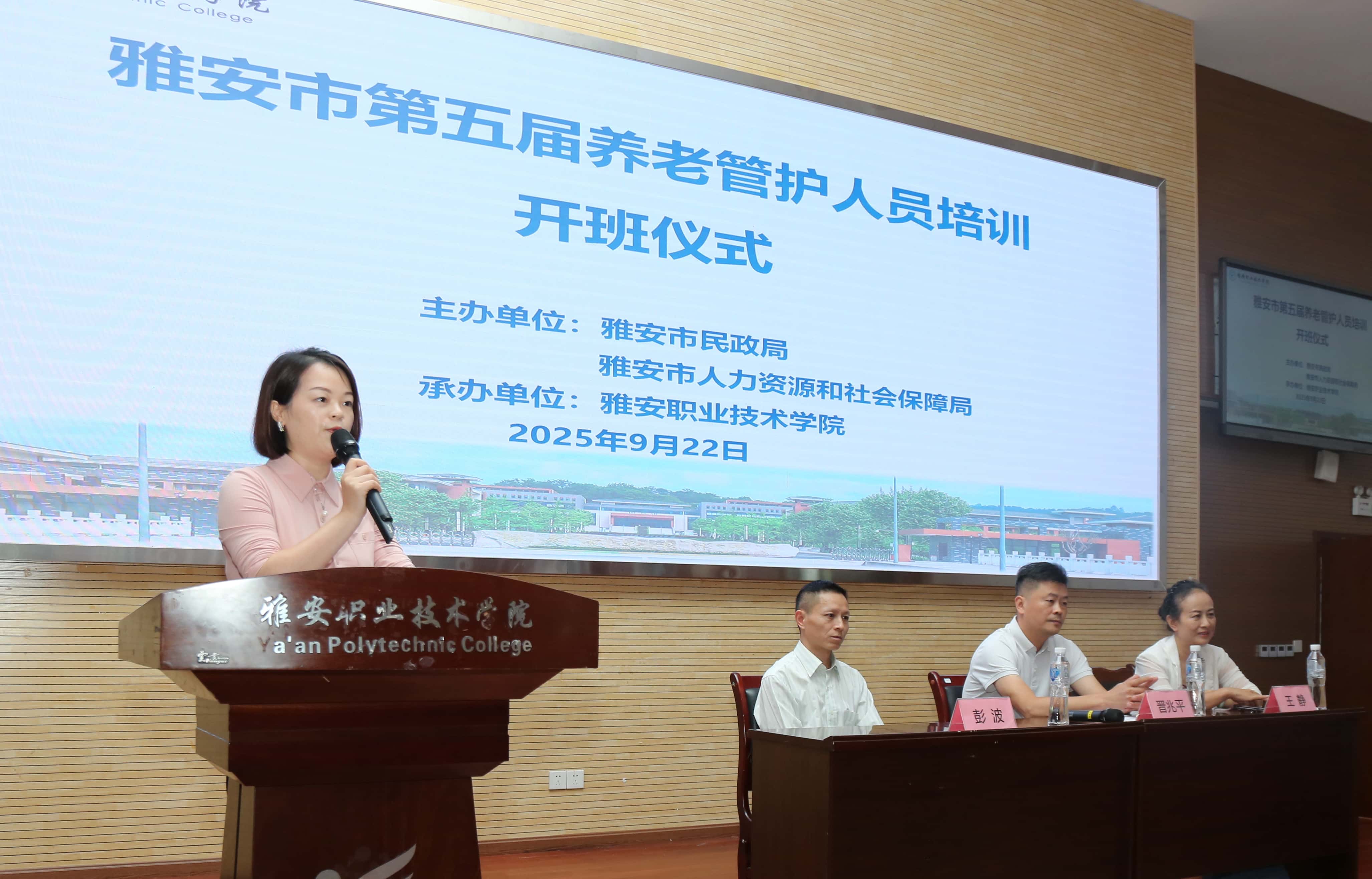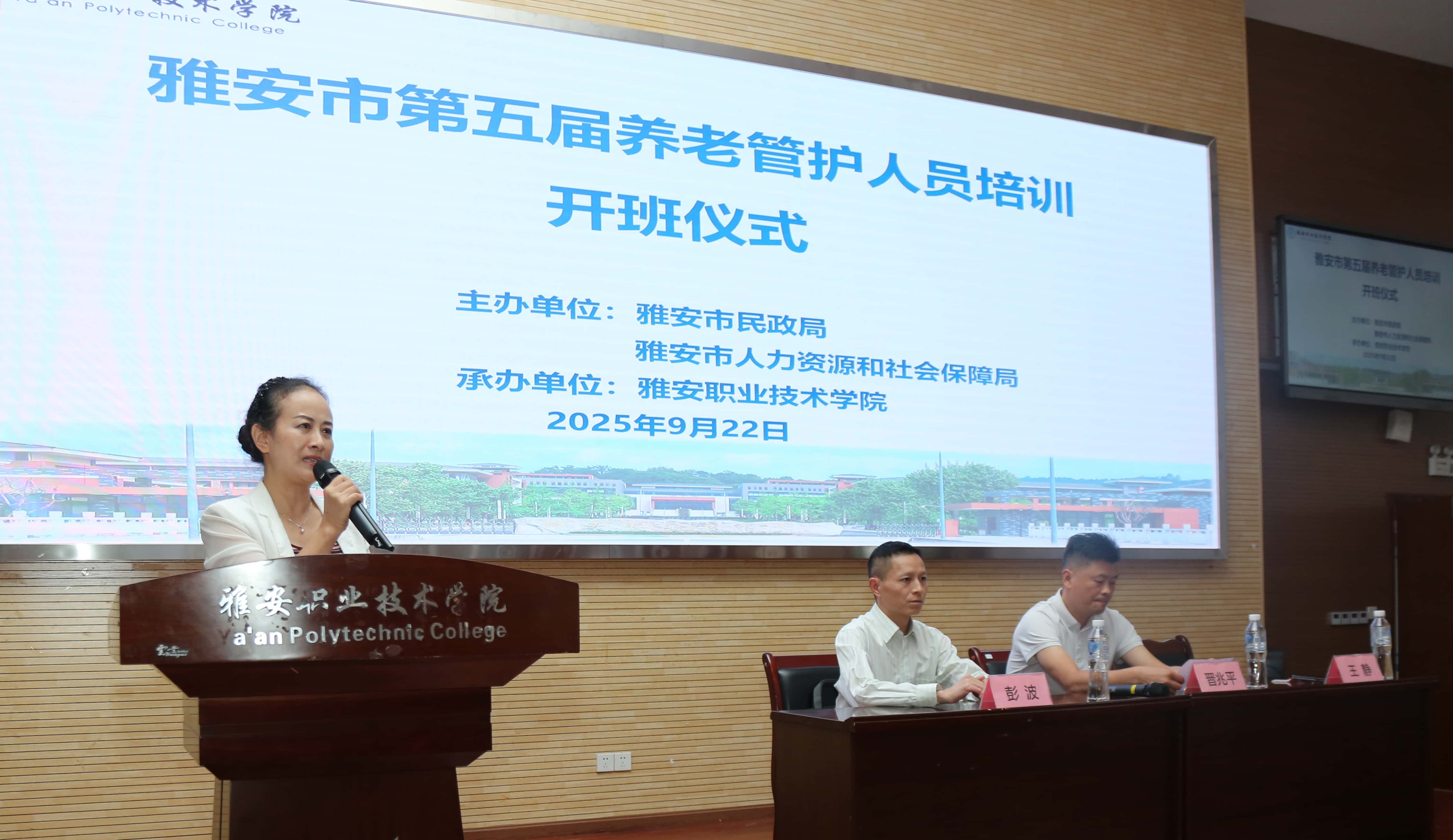 为深入贯彻国家关于养老服务发展的决策部署,加强养老服务人才专业化建设,推动养老服务高质量发展,9月22日至26日,由雅安市民政局、雅安市人力资源和社会保障局联合主办,学院承办的雅安市第五届养老管护人员培训暨养老护理员职业技能竞赛在护理学院实训中心顺利举行。市民政局、市人社局、护理学院相关负责人,以及全市各养老服务机构管理人员和护理人员共计50余人参加开班仪式。