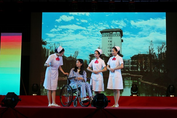 学院党委书记李春模在大会上致辞,向护理师生致以节日的祝贺,希望同学们继承和发扬护理事业的光荣传统。院长石静宣布职业教育活动周启动。晚会在舞蹈《光荣与梦想》中拉开了帷幕,在晚会正式开始后,晚会表演正式开始。新疆舞《掀起你的盖头来》让我们感受到了浓郁的民族特色;舞蹈《热血街舞》充满青春活力;情景剧《大山支交》讴歌了教师们无私奉献的精神;《礼仪展示》通过规范的形体语言体现了护士的礼仪修养以及良好的职业操守。晚会以丰富多样的节目形式,给观众带来了一场视觉盛宴。
