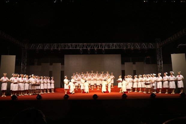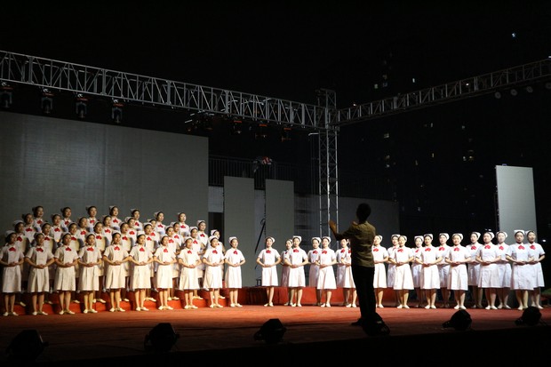 5月10日,由学院主办,护理系、院团委、学生处承办的“无悔青春﹒与爱同行”——“5.12”国际护士节庆祝大会暨职业教育活动周启动仪式在青年路校区田径场隆重举行。学院党委书记李春模、院长石静、党委副书记付洪涛、副院长樊先茂、党委委员宋立智等领导,参加学院产学研创大会的嘉宾,学院各部门系部负责人,护理系教师,护理系全体学生,教育系、旅经系学生代表近2000人观看了本次晚会。