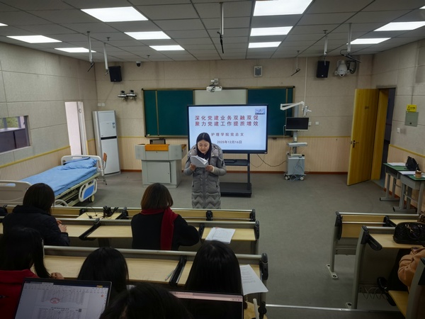 为持续深入推进“深化党建业务双融双促 聚力党建工作提质增效”主题活动,总结2025年度党建与业务融合实践成果,进一步凝聚共识、探索路径,12月16日,护理学院党总支在学校青年路校区护理实训楼504组织召开了专题主题党日活动。活动由党总支书记陆小路主持,全体党员参加。